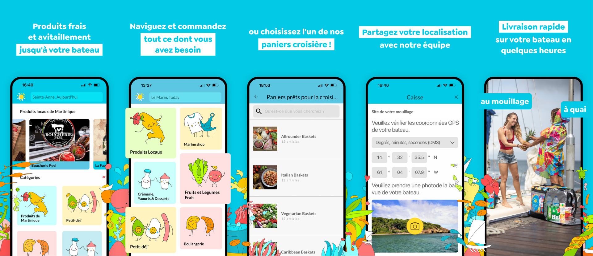 Notre processus est simple. Vous passez une ou de multiples commandes via notre application Paradise Foods – que ce soit pour des produits du quotidien jusqu’aux spécialités locales . Vous choisissez ensuite parmi les options de livraison : programmée, le jour même ou le lendemain. Asseyez-vous et souriez, nous vous livrons ensuite directement sur votre bateau à l’heure et à la date qui vous conviennent.